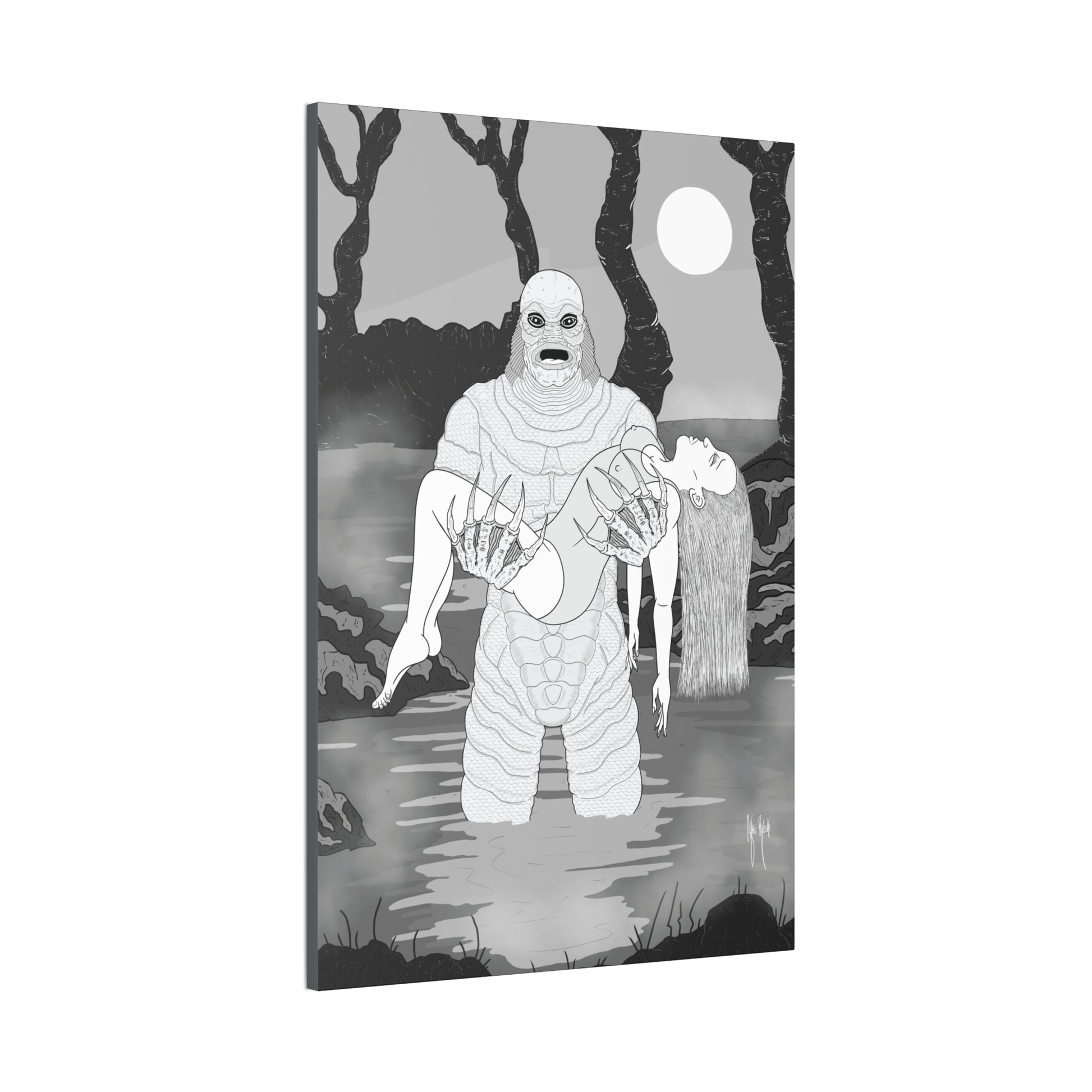 This creature from the black lagoon 24x36 canvas print offers a spooky and mysterious vibe, perfect for horror enthusiasts and fans of classic movie monsters.