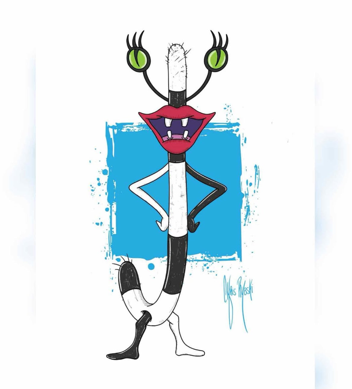 Celebrate one of Nickelodeon’s most iconic 90s characters with this exclusive Oblina art print inspired by “AAAHH!!! Real Monsters.” Known for her classy attitude and black-and-white stripes, Oblina comes to life in this bold and expressive design that captures her perfectly creepy charm.